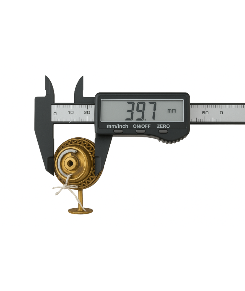 Polished brass 14"' Kosmos burner. The burner is supplied complete with a wick and a detachable collar. The collar can be easily unscrewed if it's not required, and the burner will screw into your lamp base