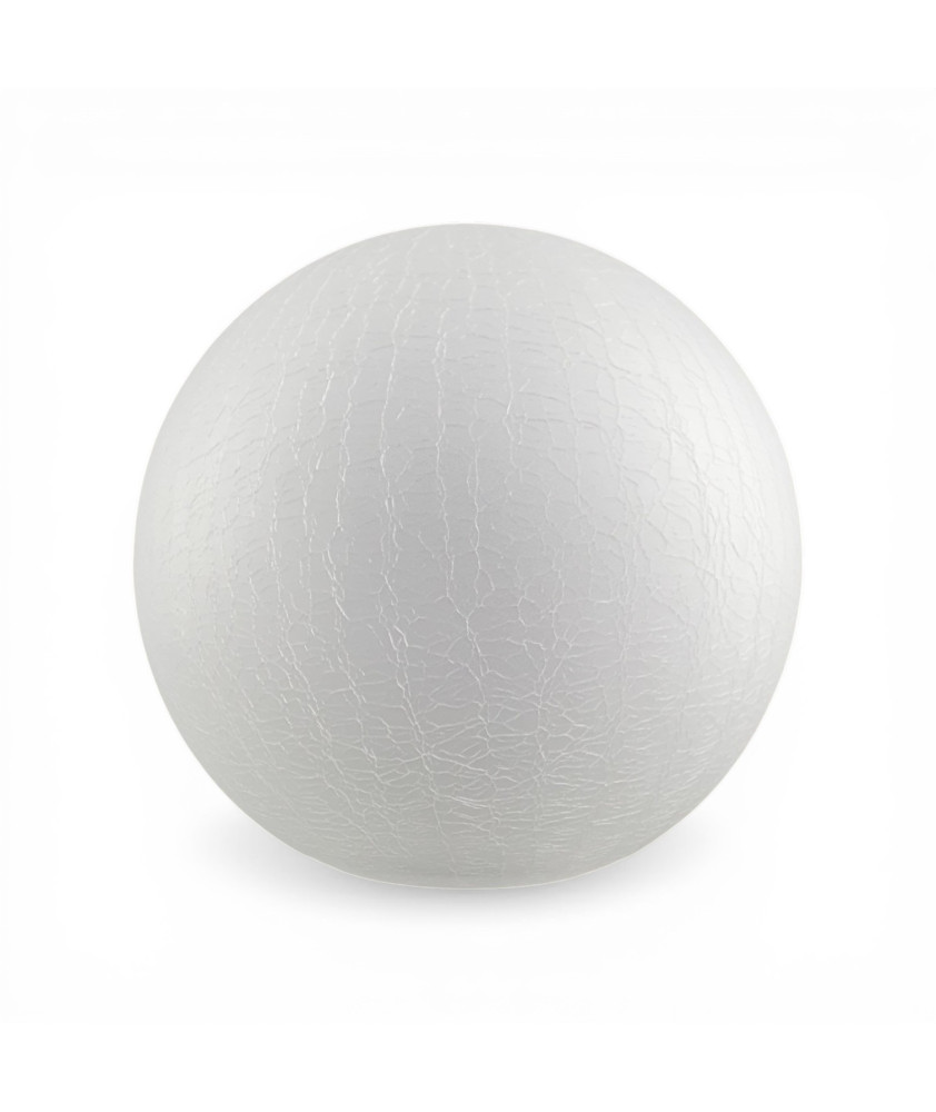 Decorative 200mm crackled glass globe shade designed to add texture and visual character to traditional globe lighting. The distinctive crackled finish creates subtle reflections and depth when illuminated, giving the shade a unique decorative appearance.
