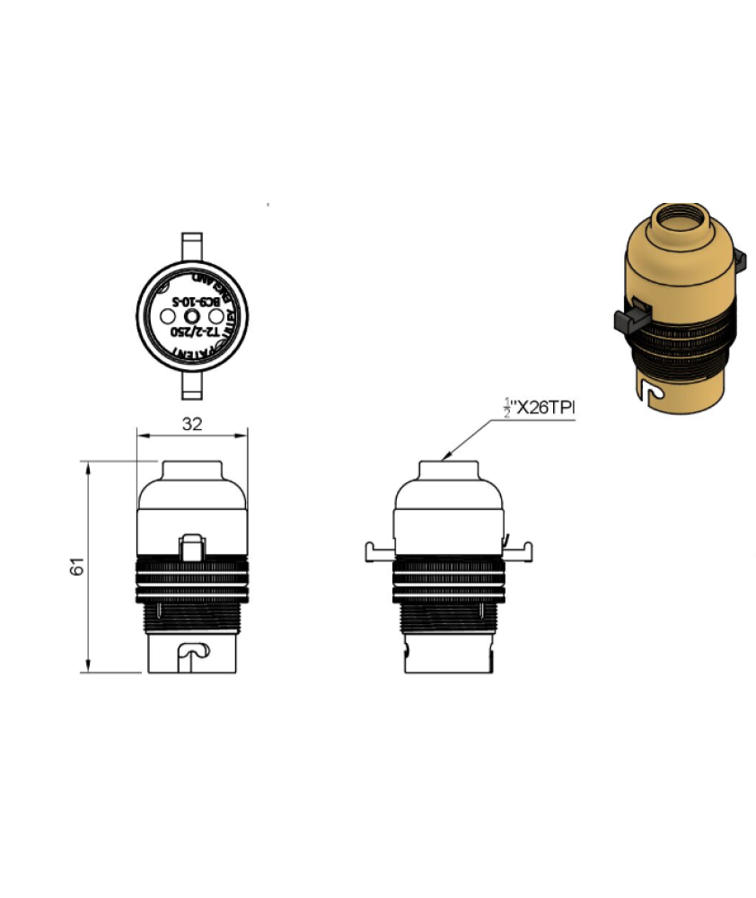 This high-quality **BC (Bayonet Cap)** switched bulb holder features a **12 mm top entry hole** and integrated on/off switch, making it a tidy solution for pendant lights, table lamps and bespoke lighting builds where simple control and a clean finish matter.