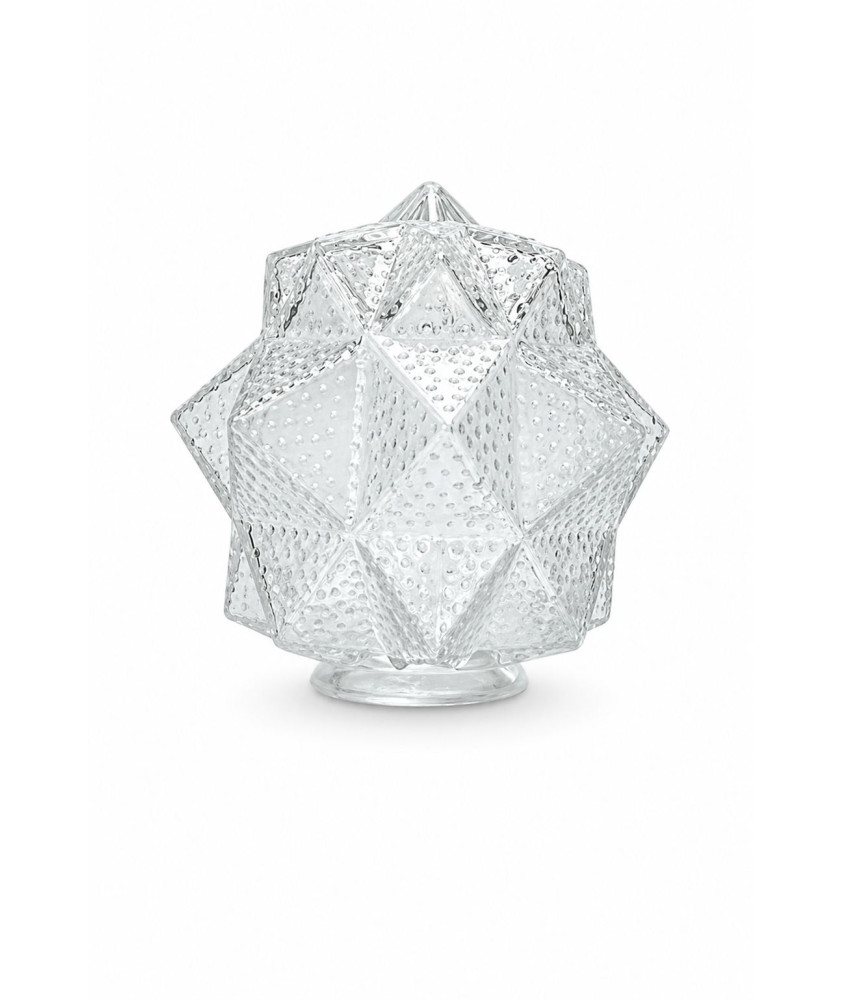 Decorative clear Art Deco star glass shade designed for ceiling, pendant, and feature lighting. Manufactured from high-quality clear glass, this shade delivers strong illumination while showcasing its distinctive geometric pattern.
