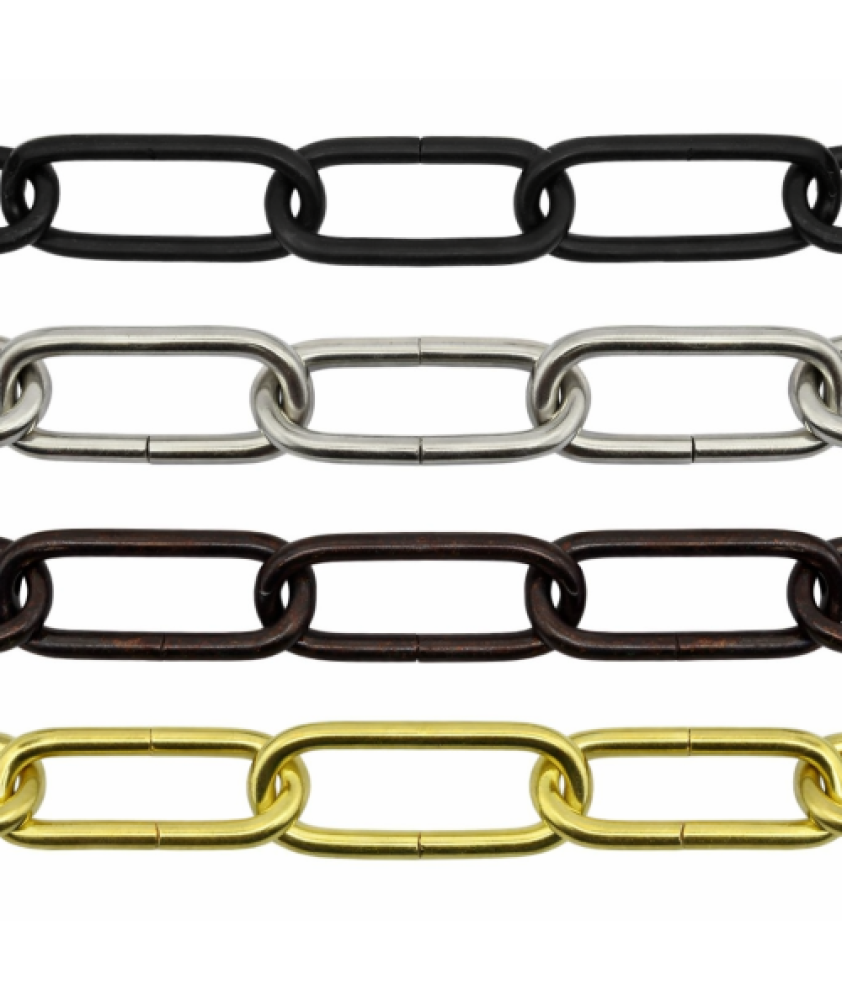 High-strength heavy duty lighting chain designed to support pendant lights, chandeliers, sconces and other suspended fixtures with confidence. Its substantial link profile offers reliable performance in both traditional and industrial lighting applications.