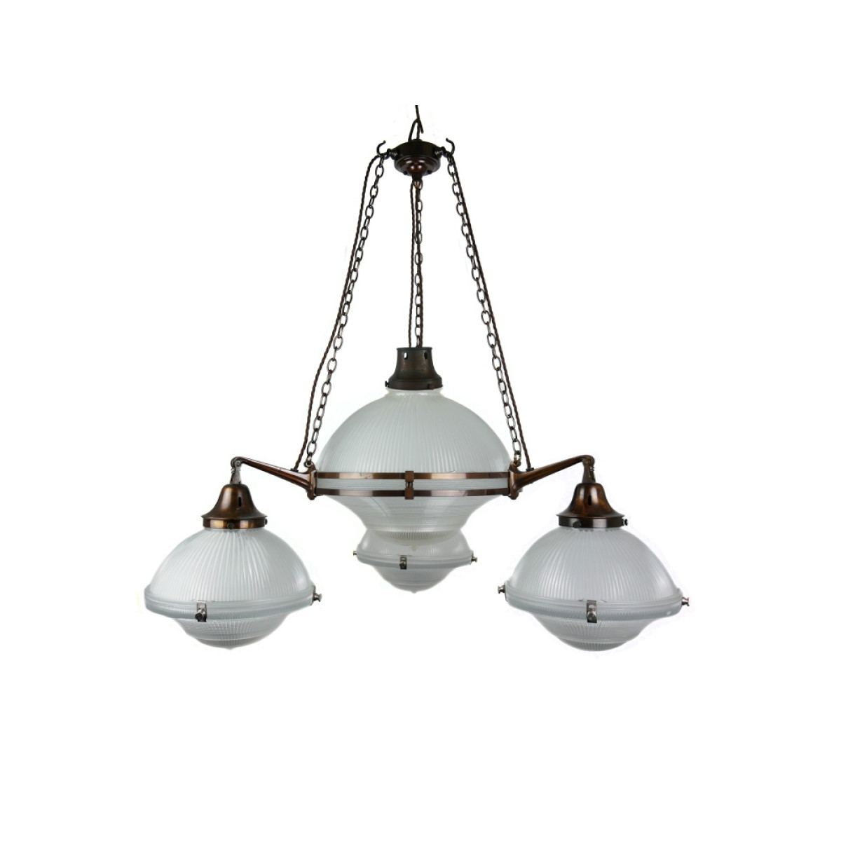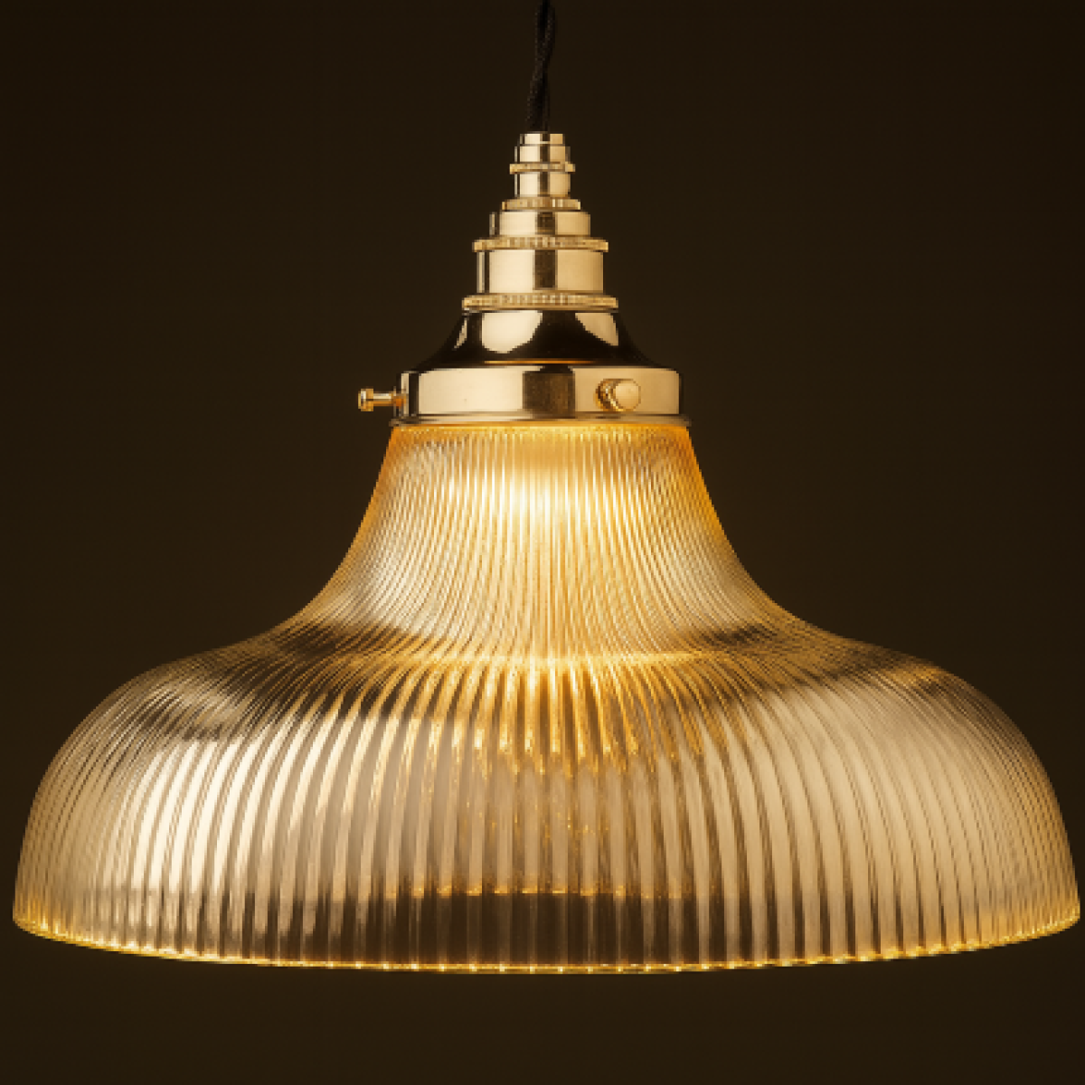 John Moncrieff Ltd manufactures precision custom Holophane glass shades — classic prismatic lighting components that combine industrial heritage with modern bespoke capability. Holophane-style prismatic glass spreads light widely, reduces glare and enhances illumination quality for restorations, bespoke fixtures and high-end lighting projects.