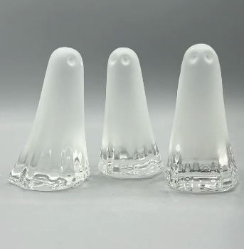 The Resident Glass Ghost was created for a highly specific installation and collector audience, so the material and finish were critical. The York Ghost Merchants describe the glass ghosts as press-moulded in clear lime-soda glass and then polished at high temperature through fire polishing to achieve the crystal-clear quality they wanted.